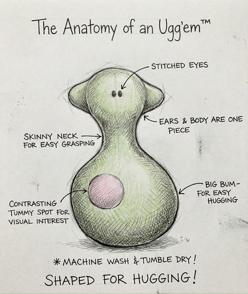 One of our most popular creations. These ugg'ems are ergonomically designed to fit perfectly under the arm of your little ones. They'll love to "hug them" all night long.